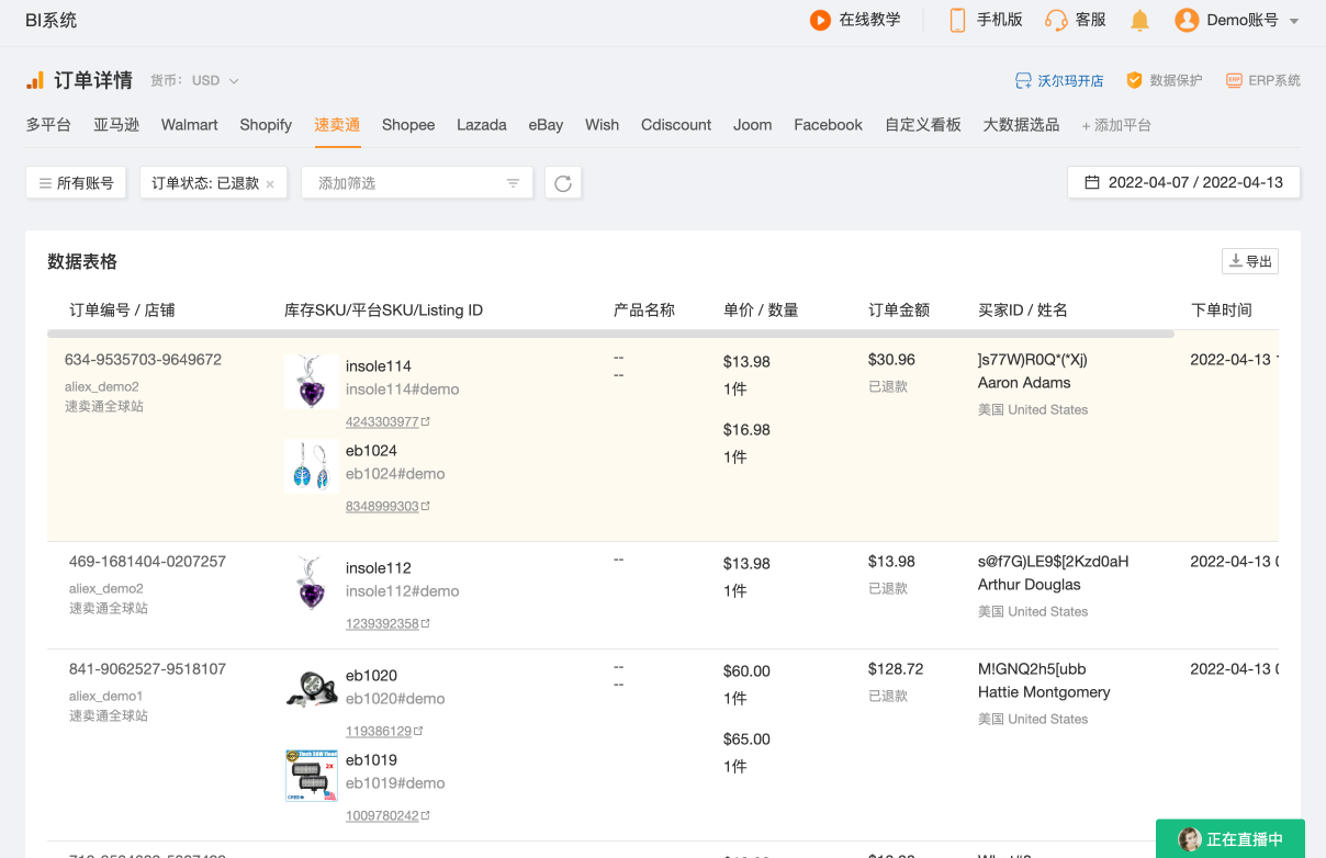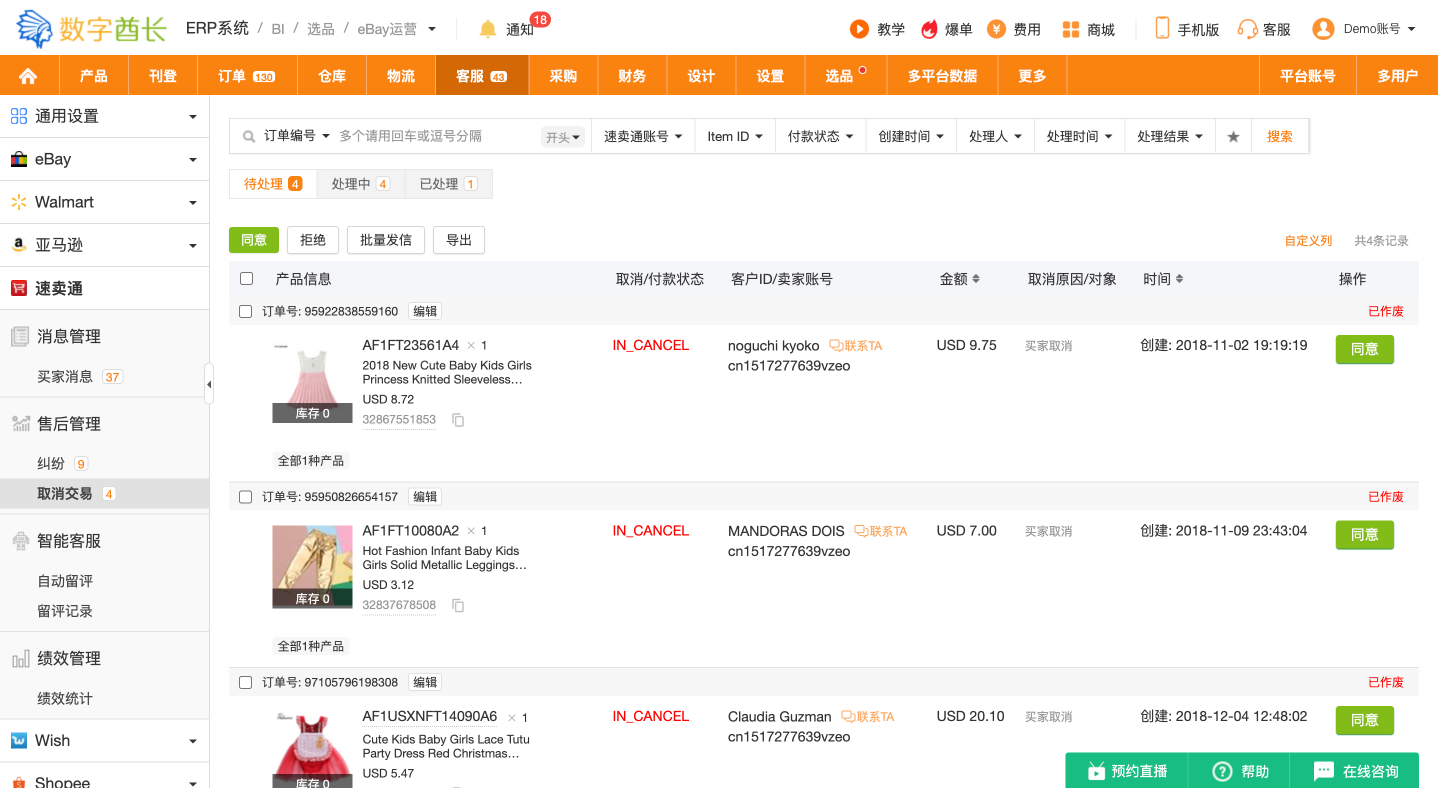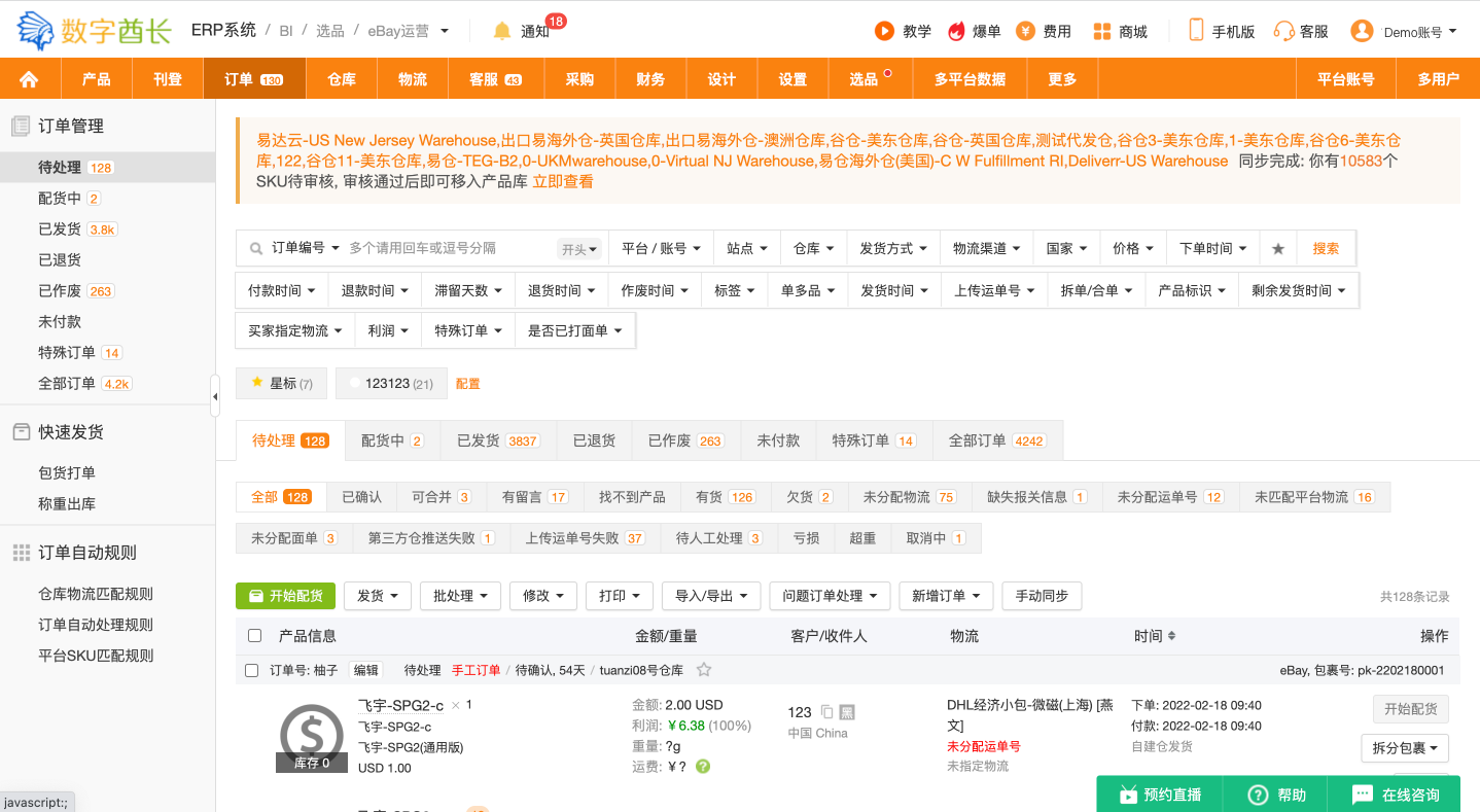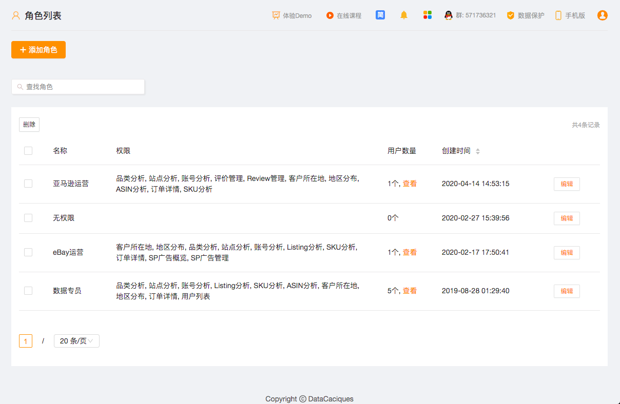 为数据、刊登、订单、客服、仓库等各个模块设计了完整清晰的权限